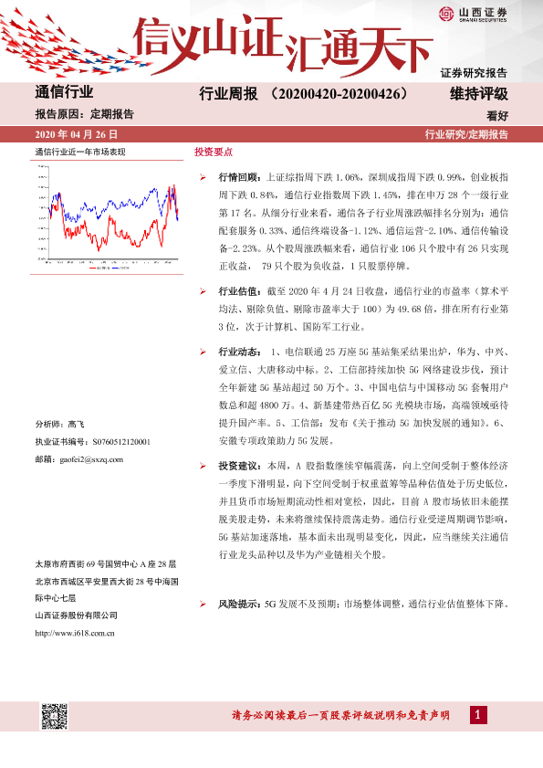 【山西证券】【20200426】通信行业周报-10页