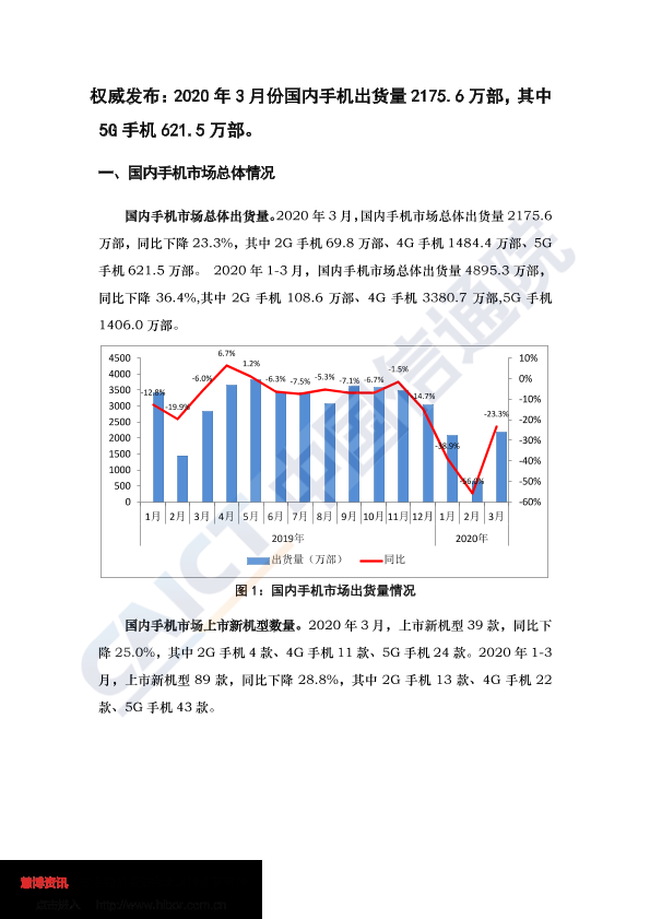 【中国信通院】【20200414】2020年3月份国内手机出货量2175.6万部,其中5G手机621.5万部-3页