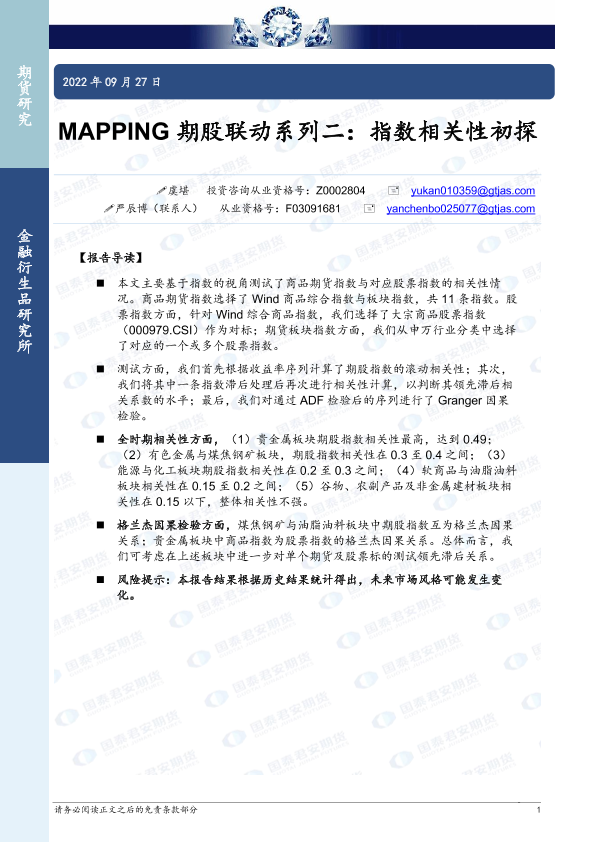 【国泰君安期货】【20220927】MAPPING期股联动系列二:指数相关性初探-29页