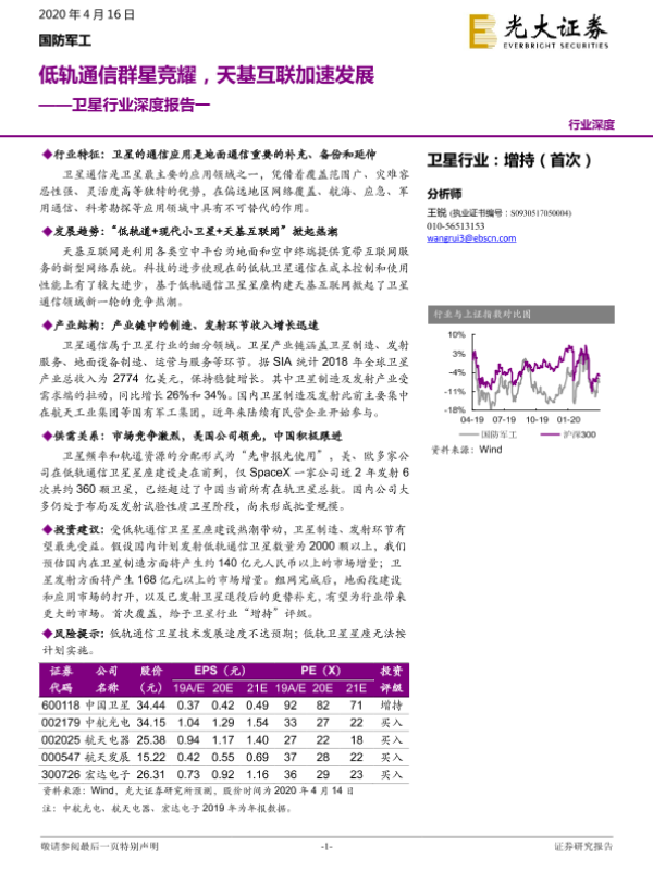 【光大证券】【20200416】低轨通信群星竞耀,天基互联加速发展——卫星行业深度报告一-44页
