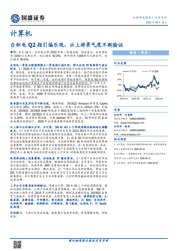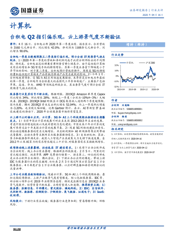 【国盛证券】【20200416】计算机:台积电Q2指引偏乐观,云上游景气度不断验证-2页