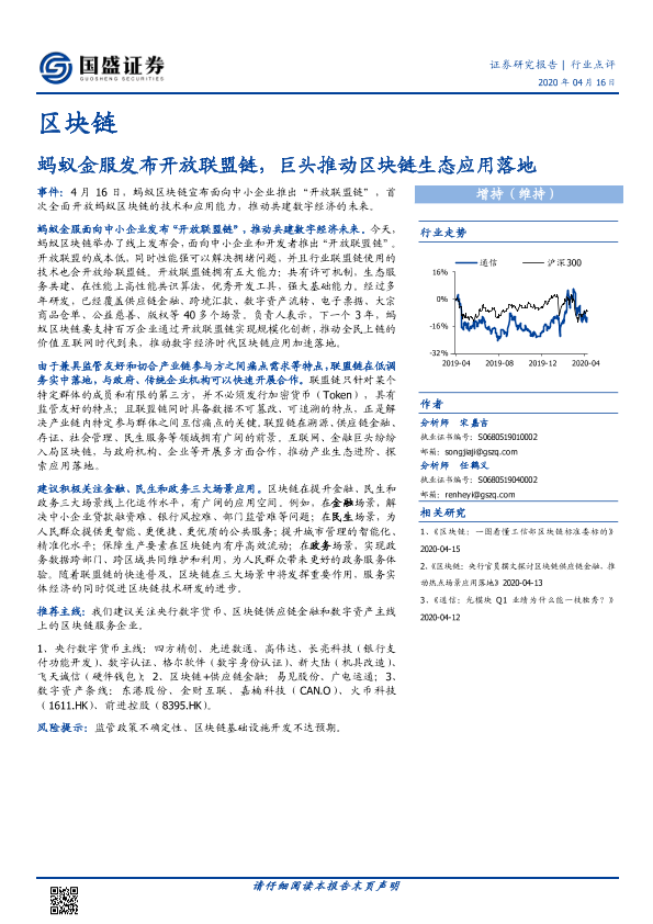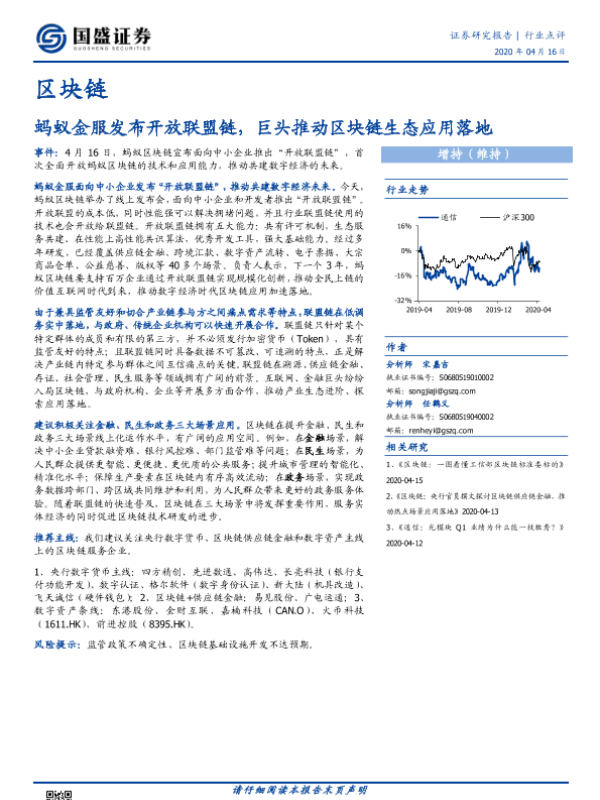 【国盛证券】【20200416】区块链:蚂蚁金服发布开放联盟链,巨头推动区块链生态应用落地-6页