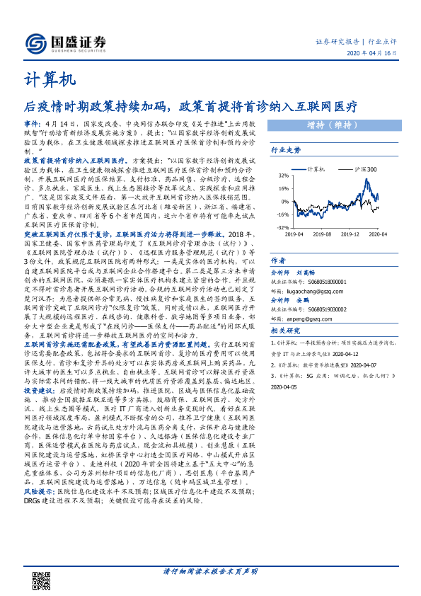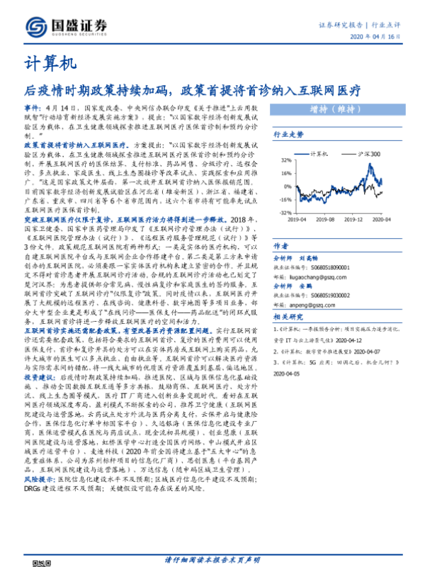 【国盛证券】【20200416】计算机行业点评:后疫情时期政策持续加码,政策首提将首诊纳入互联网医疗-2页
