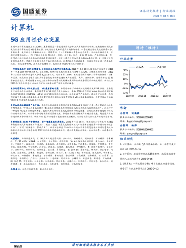【国盛证券】【20200418】20200418-国盛证券-计算机行业周报:5G应用性价比突显-6页