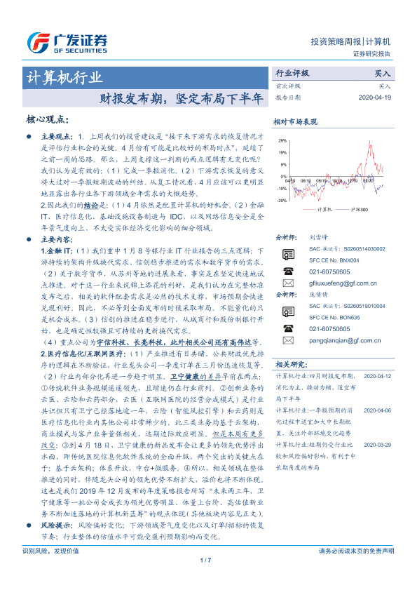 【广发证券】【20200419】20200419-广发证券-计算机行业投资策略周报:财报发布期,坚定布局下半年-7页