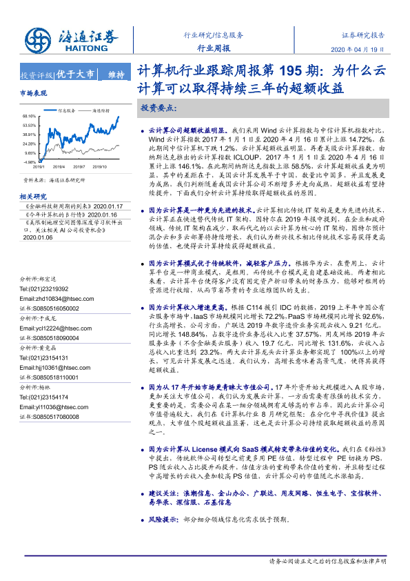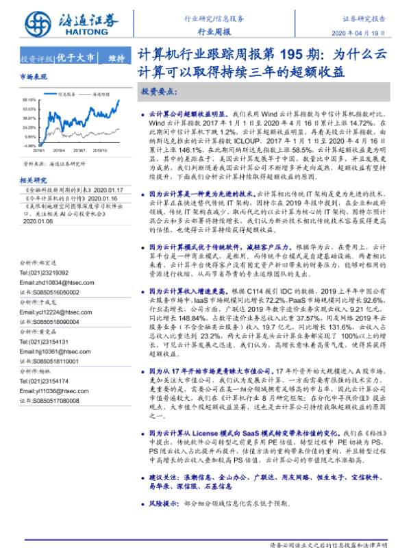 【海通证券】【20200419】计算机行业跟踪周报第195期:为什么云计算可以取得持续三年的超额收益-7页