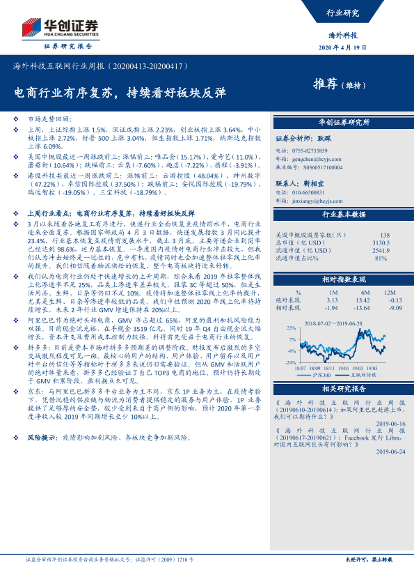 【华创证券】【20200419】20200419-华创证券-海外科技互联网行业周报:电商行业有序复苏,持续看好板块反弹-13页