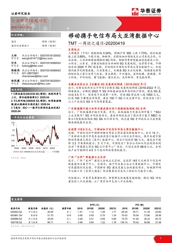 【华泰证券】【20200419】TMT一周谈之通信:移动携手电信布局大亚湾数据中心-18页