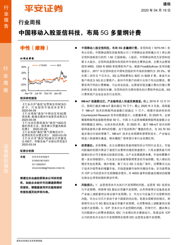 【平安证券】【20200419】通信行业周报:中国移动入股亚信科技,布局5G多量纲计费-5页