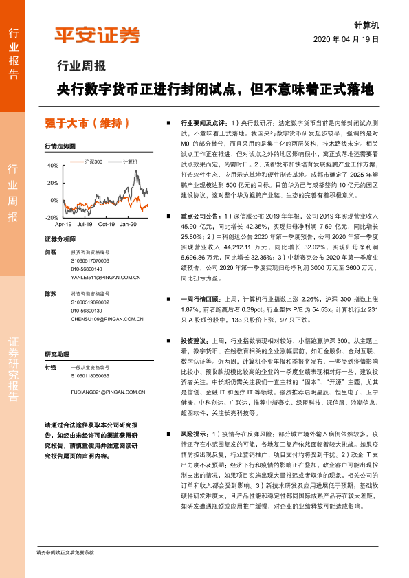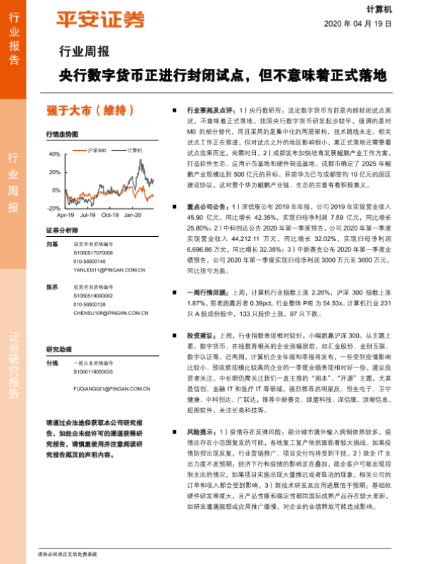 【平安证券】【20200419】计算机行业周报:央行数字货币正进行封闭试点,但不意味着正式落地-6页