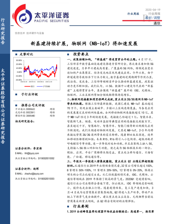 【太平洋证券】【20200419】通信行业周报:新基建持续扩展,物联网(NB-IoT)将加速发展-13页