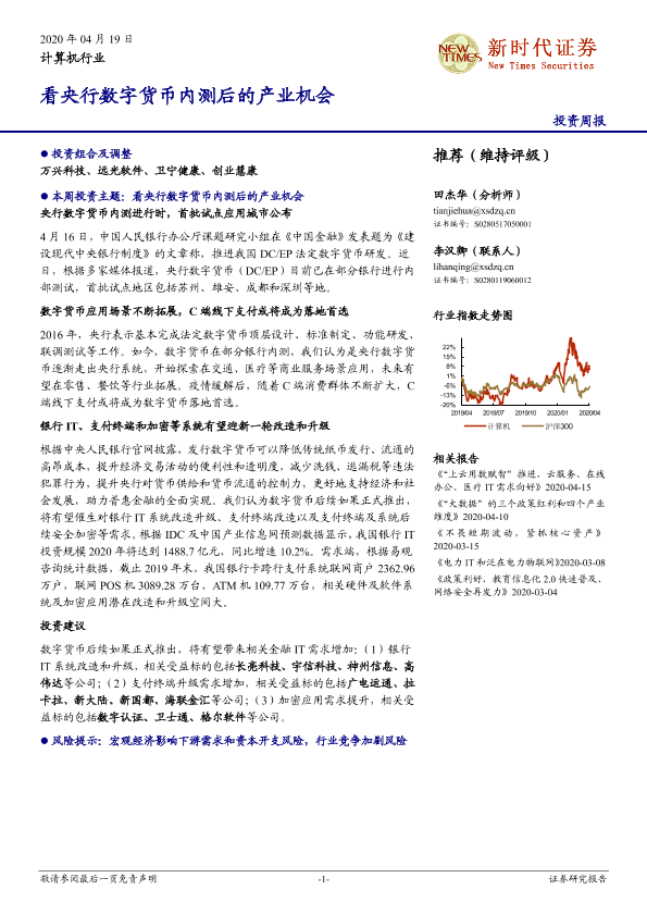 【新时代证券】【20200419】计算机行业投资周报:看央行数字货币内测后的产业机会-20页