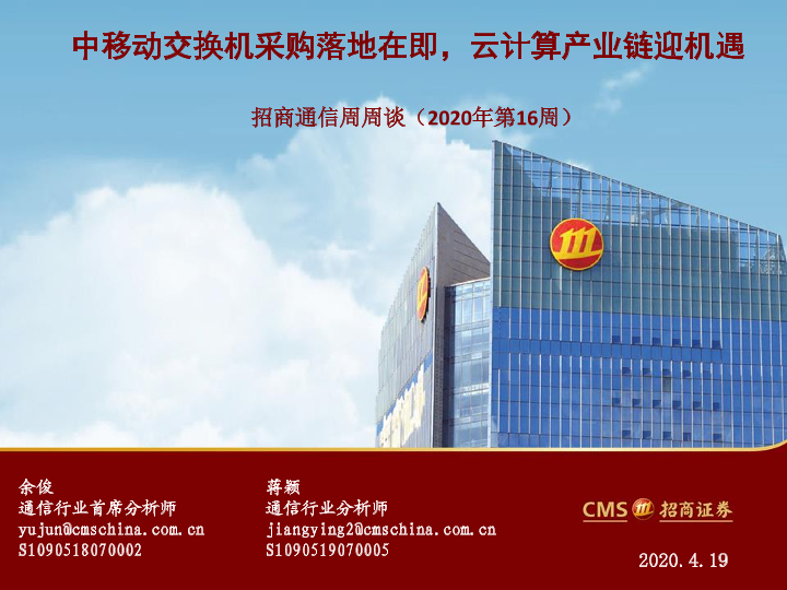 【海通证券】【20200419】招商通信周周谈(2020年第16周):中移动交换机采购落地在即,云计算产业链迎机遇-51页