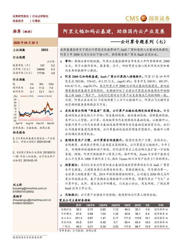 【海通证券】【20200420】云计算专题系列(七):阿里大幅加码云基建,助推国内云产业发展-4页