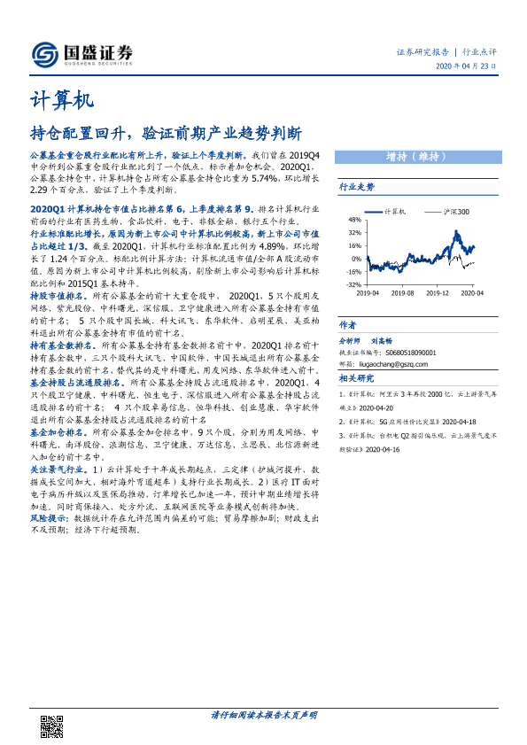 【国盛证券】【20200423】计算机:持仓配置回升,验证前期产业趋势判断-8页