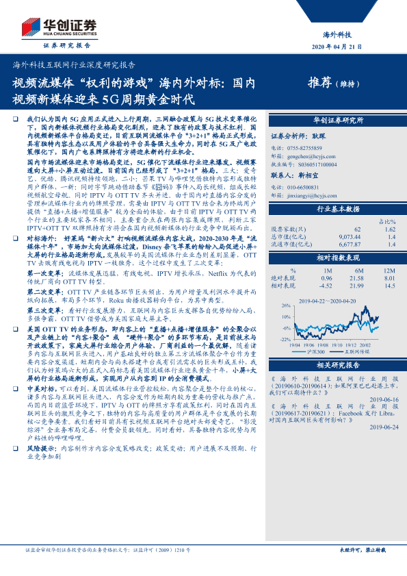【华创证券】【20200421】海外科技互联网行业深度研究报告:视频流媒体“权利的游戏”海内外对标:国内视频新媒体迎来5G周期黄金时代-39页