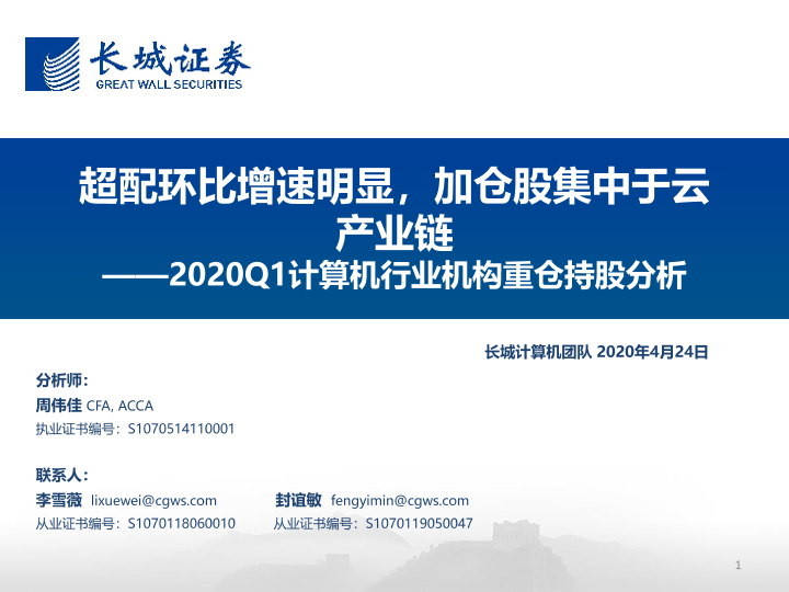 【长城证券】【20200424】2020Q1计算机行业机构重仓持股分析:超配环比增速明显,加仓股集中于云产业链-13页