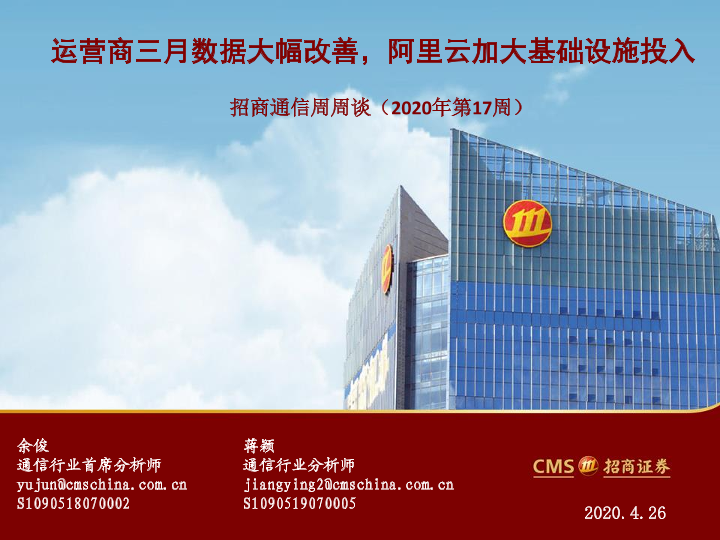 【海通证券】【20200426】招商通信周周谈(2020年第17周):运营商三月数据大幅改善,阿里云加大基础设施投入-42页