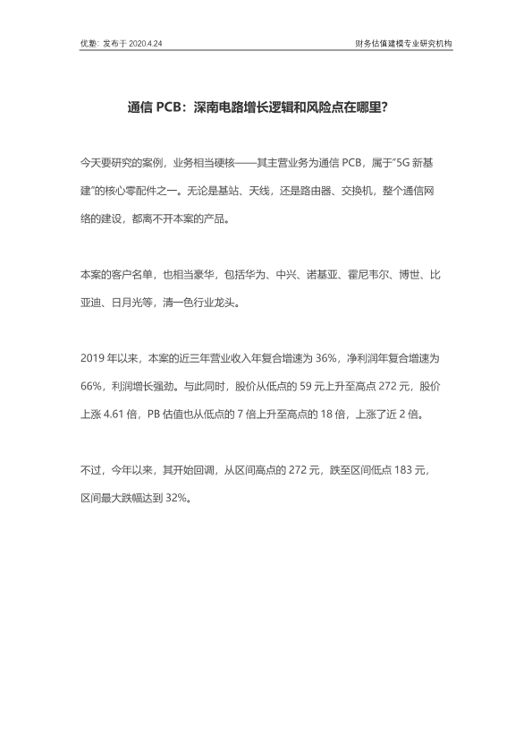 【优塾】【20200424】通信PCB:深南电路增长逻辑和风险点在哪里?-44页