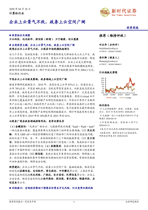 【新时代证券】【20200426】计算机行业投资周报:企业上云景气不改,政务上云空间广阔-19页