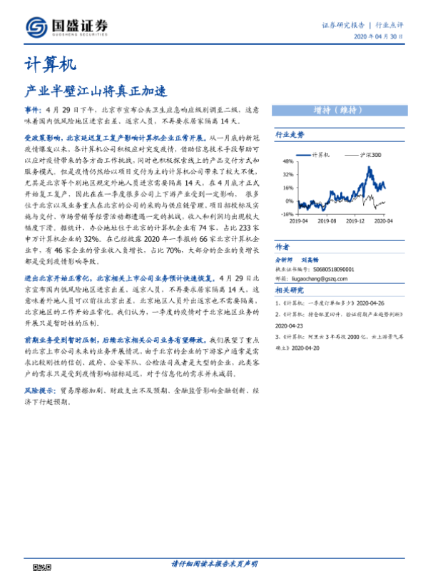 【国盛证券】【20200430】计算机行业点评:产业半壁江山将真正加速-6页