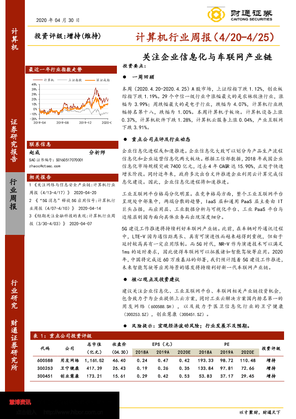 【财通证券】【20200430】20200430-财通证券-计算机行业周报:关注企业信息化与车联网产业链-12页