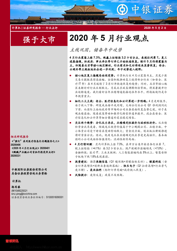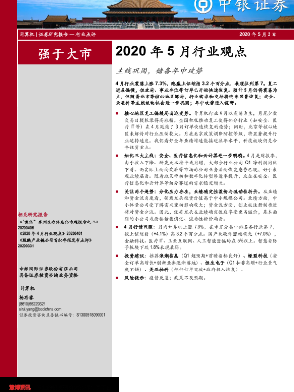 【中银证券】【20200502】计算机2020年5月行业观点:主线巩固,储备年中攻势-11页