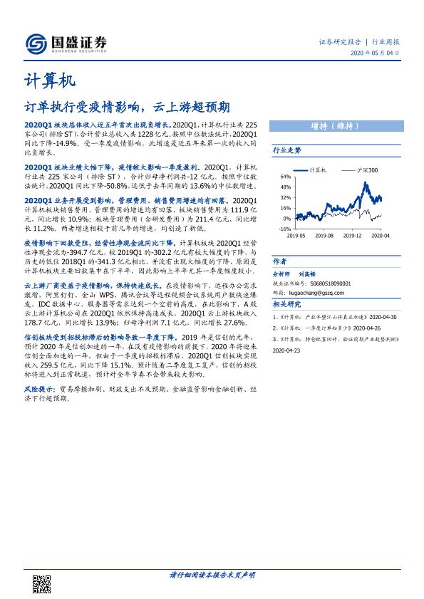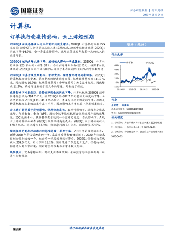 【国盛证券】【20200504】计算机行业周报:订单执行受疫情影响,云上游超预期-13页