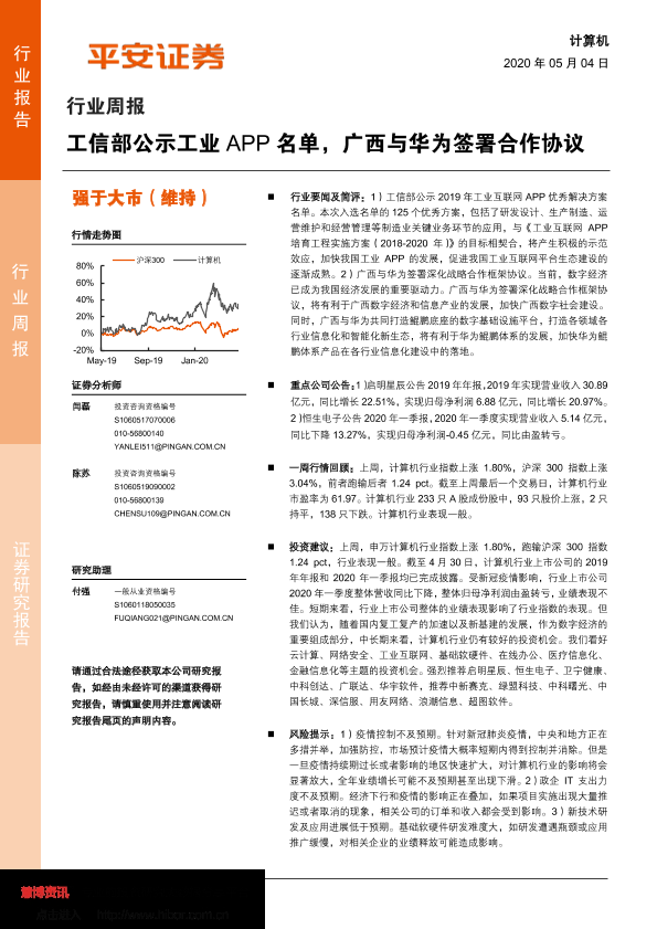 【平安证券】【20200504】计算机行业周报:工信部公示工业APP名单,广西与华为签署合作协议-5页