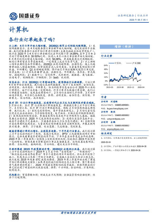 云计算 信息安全 医疗IT 计算机行业 订单恢复