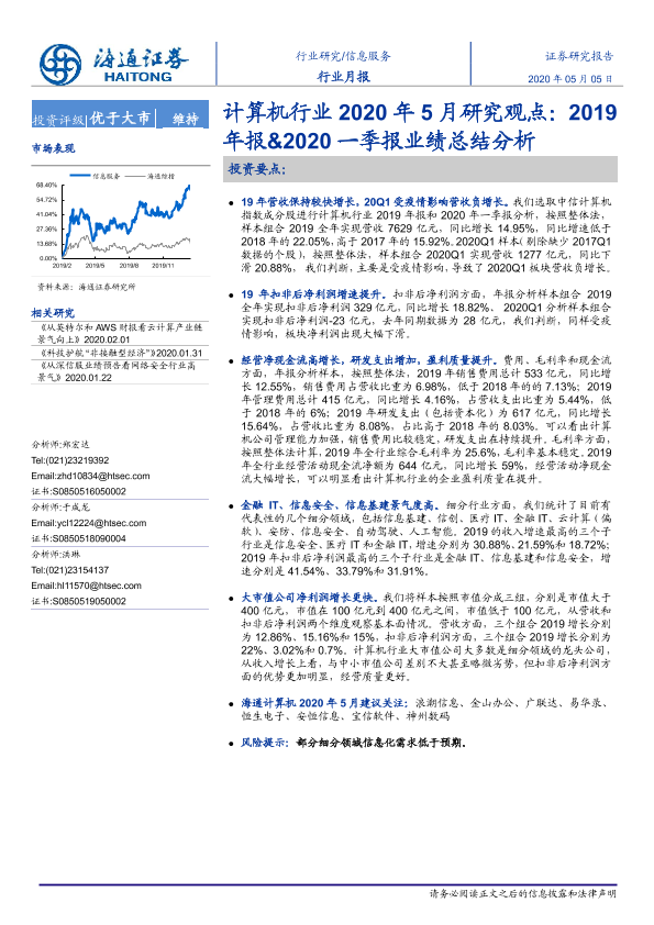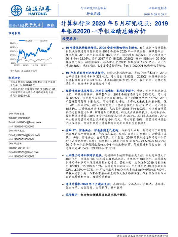 【海通证券】【20200505】计算机行业2020年5月研究观点:2019年报&2020一季报业绩总结分析-9页