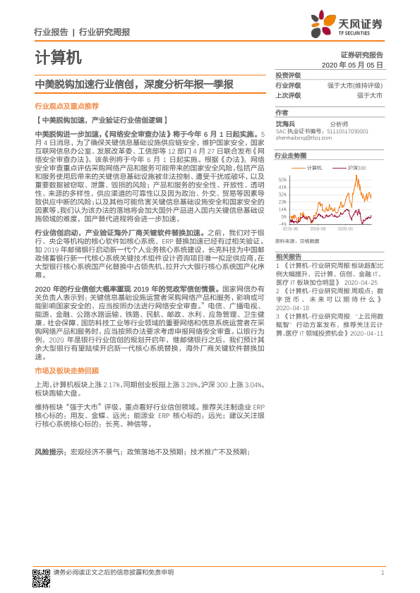 【天风证券】【20200505】20200505-天风证券-计算机行业研究周报:中美脱钩加速行业信创,深度分析年报一季报-17页