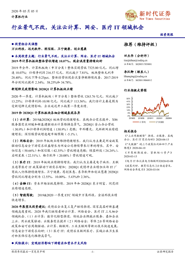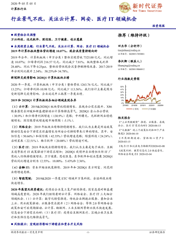【新时代证券】【20200505】计算机行业投资周报:行业景气不改,关注云计算、网安、医疗IT领域机会-28页