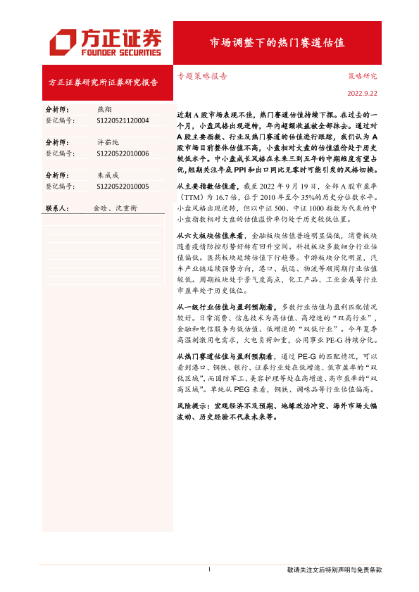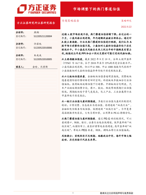 【方正证券】【20220922】市场调整下的热门赛道估值-22页