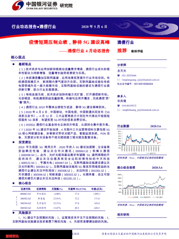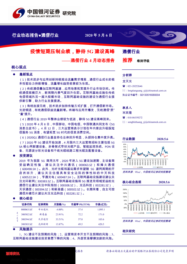 【银河证券】【20200506】通信行业4月动态报告:疫情短期压制业绩,静待5G建设高峰-40页