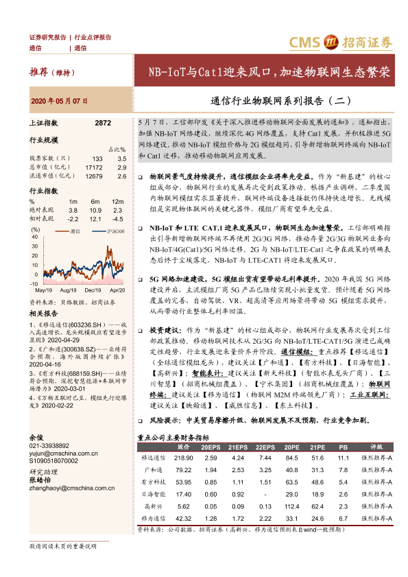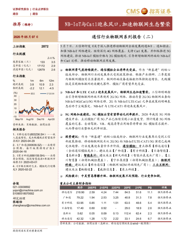 【海通证券】【20200507】通信行业物联网系列报告(二):NB-IoT与Cat1迎来风口,加速物联网生态繁荣-9页