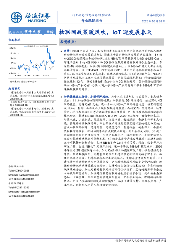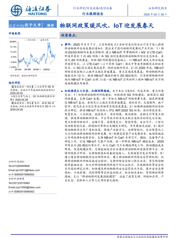 【海通证券】【20200508】通信设备行业跟踪报告:物联网政策暖风吹,IoT迎发展春天-3页