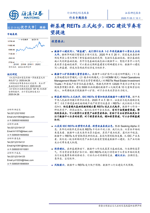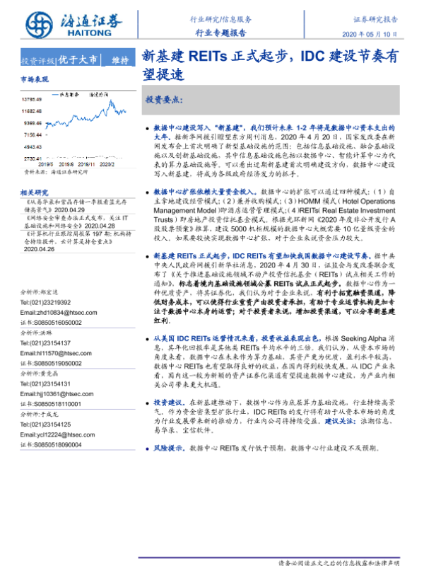 【海通证券】【20200510】信息服务行业专题报告:新基建REITs正式起步,IDC建设节奏有望提速-12页