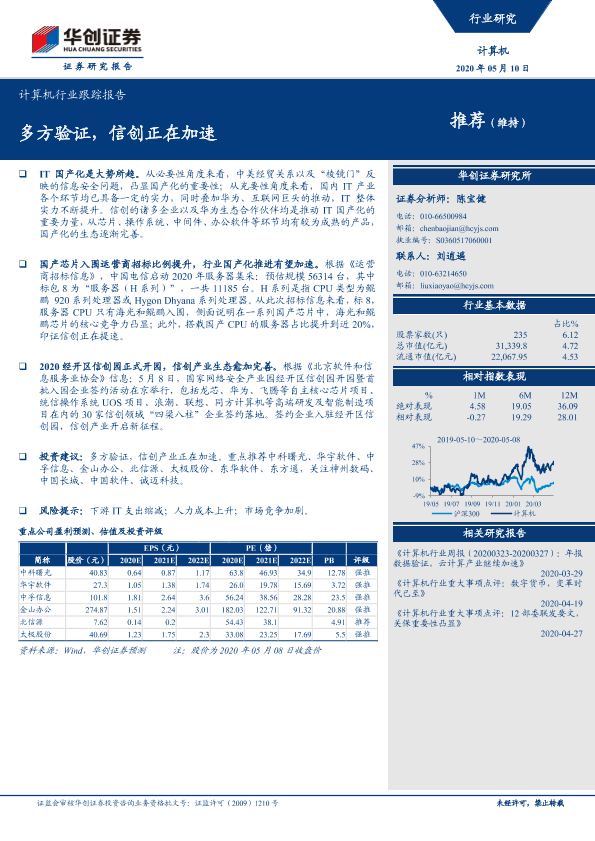 【华创证券】【20200510】20200510-华创证券-计算机行业跟踪报告:多方验证,信创正在加速-3页