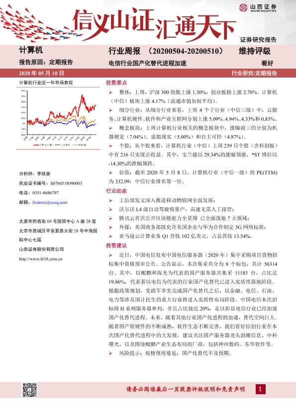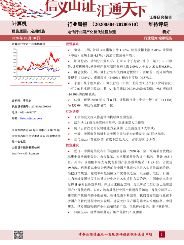 【山西证券】【20200510】20200510-山西证券-计算机行业周报:电信行业国产化替代进程加速-9页