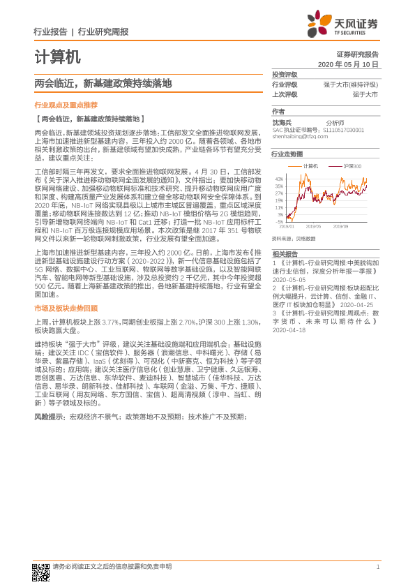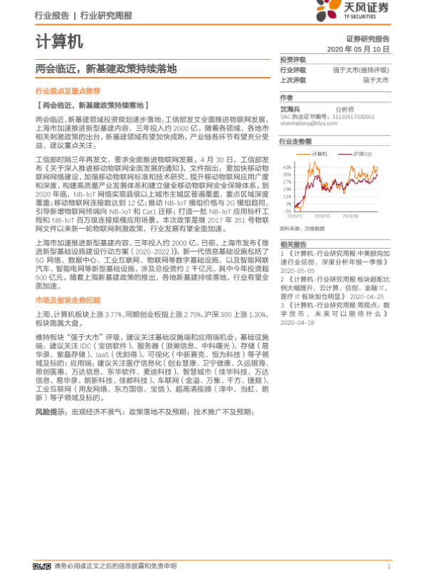 【天风证券】【20200510】计算机行业研究周报:两会临近,新基建政策持续落地-7页