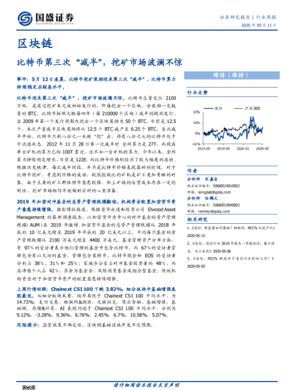 【国盛证券】【20200511】20200511-国盛证券-区块链行业周报:比特币第三次“减半”,挖矿市场波澜不惊-9页