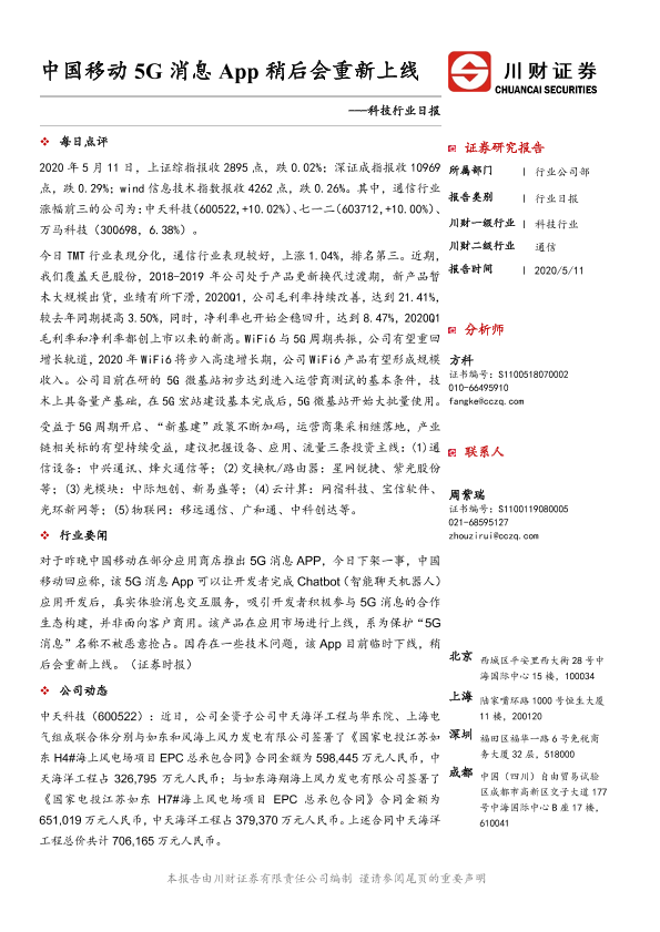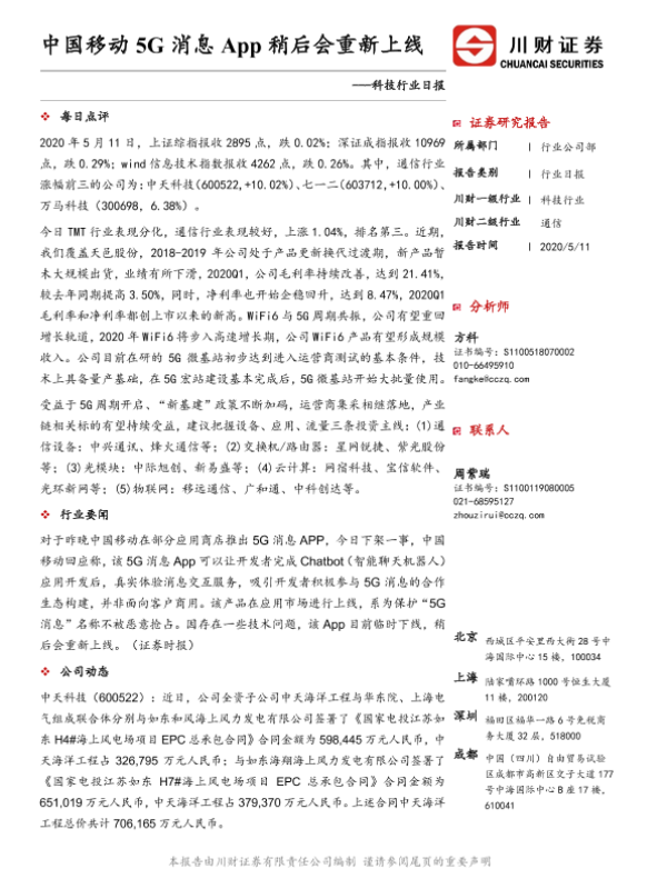 【川财证券】【20200511】科技行业日报:中国移动5G消息App稍后会重新上线-4页