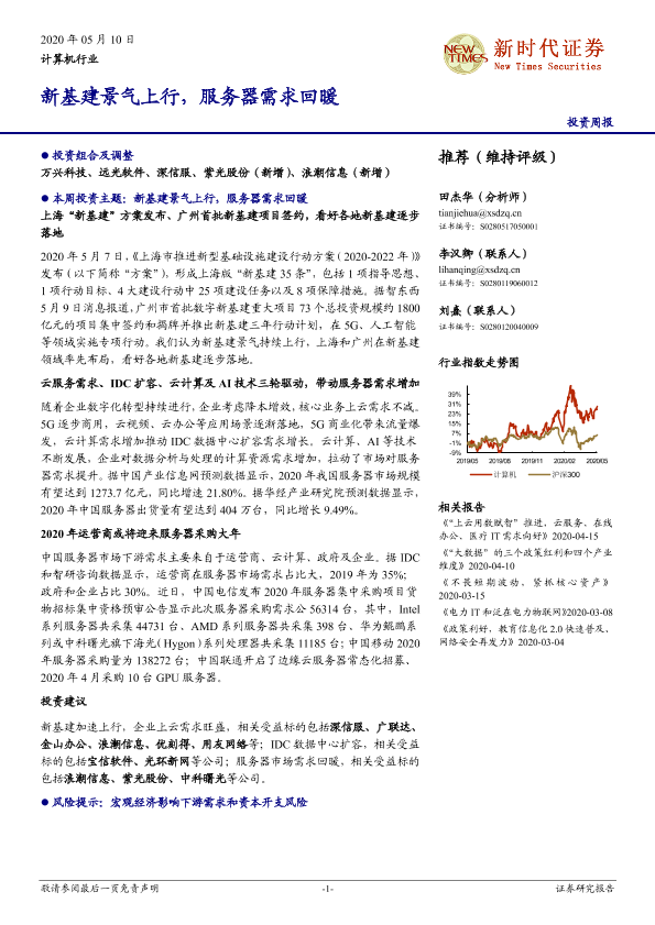 【新时代证券】【20200510】计算机行业投资周报:新基建景气上行,服务器需求回暖-27页