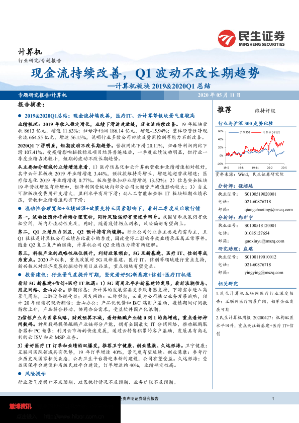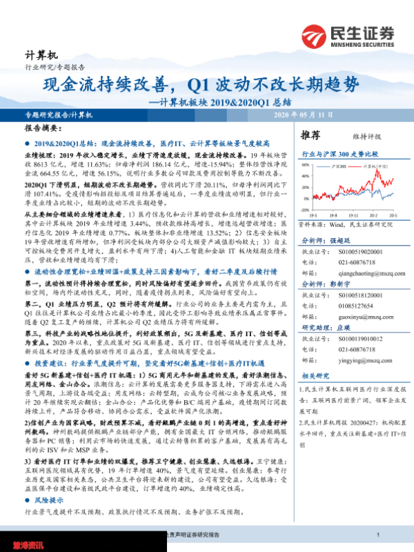 【民生证券】【20200511】计算机板块2019&2020Q1总结:现金流持续改善,Q1波动不改长期趋势-55页