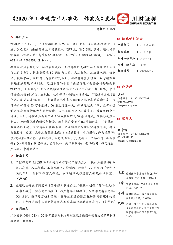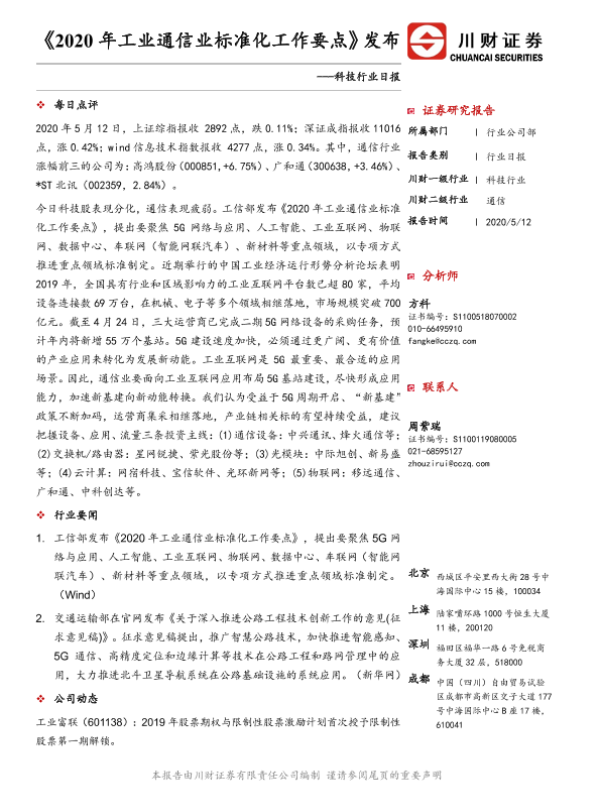 【川财证券】【20200512】2020年工业通信业标准化工作要点发布-4页