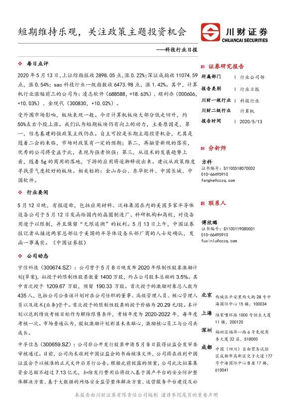 【川财证券】【20200513】科技行业日报:短期维持乐观,关注政策主题投资机会-3页