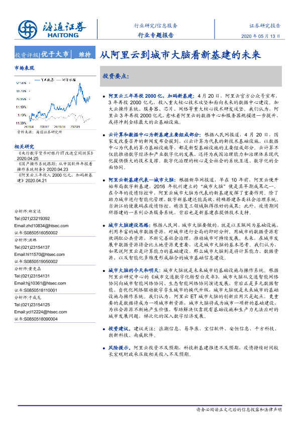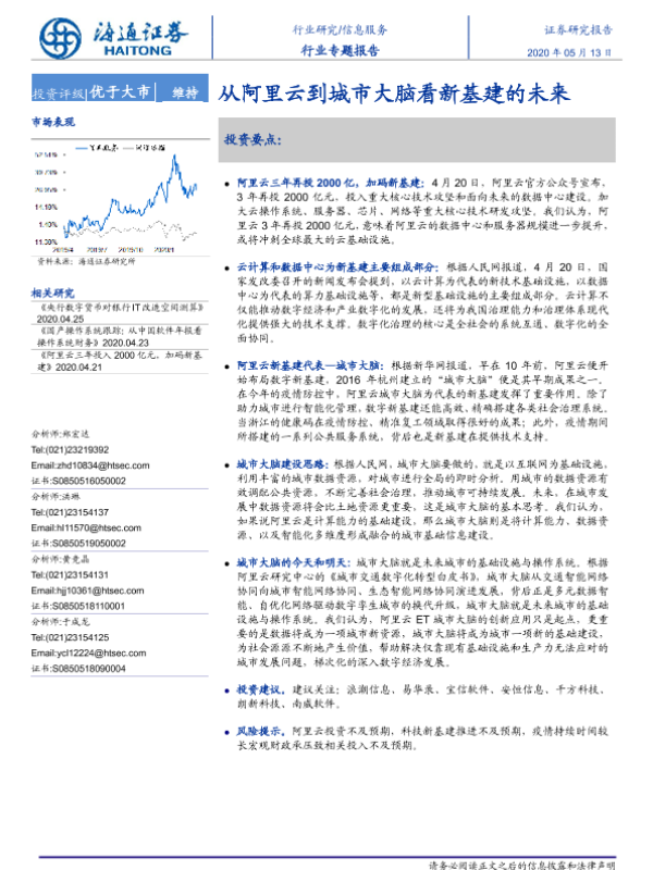 【海通证券】【20200513】20200513-海通证券-信息服务行业专题报告:从阿里云到城市大脑看新基建的未来-14页