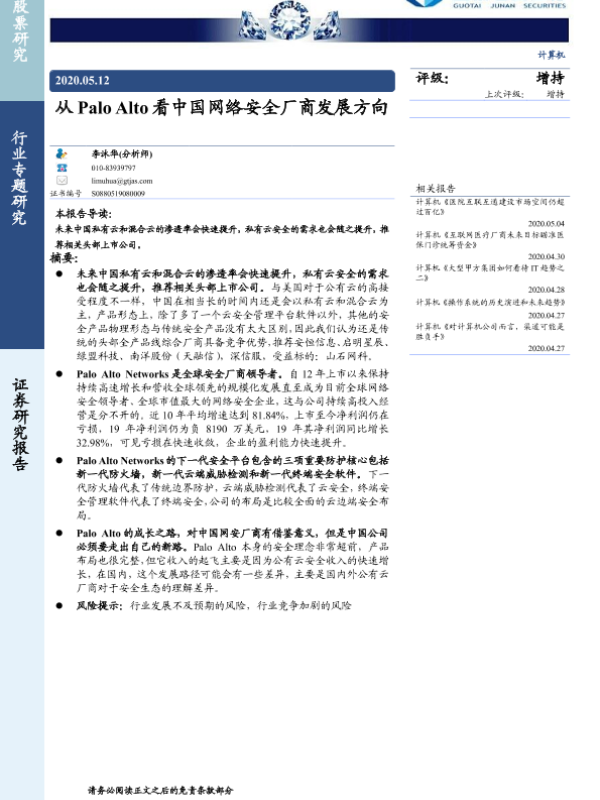 【国泰君安证券】【20200512】从Palo Alto看中国网络安全厂商发展方向-18页