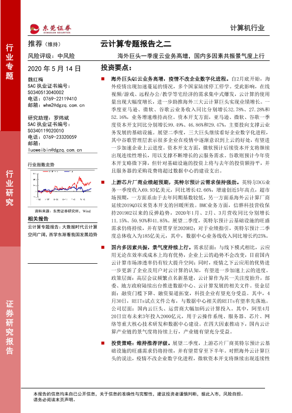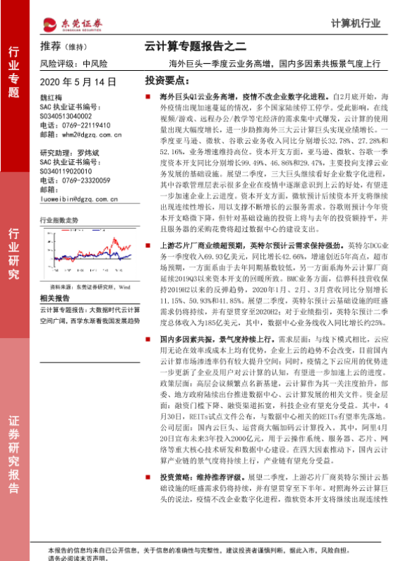 【东莞证券】【20200514】20200514-东莞证券-云计算专题报告之二:海外巨头一季度云业务高增,国内多因素共振景气度上行-16页